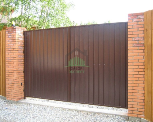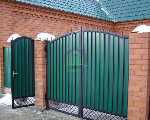 Откатные ворота, кирпич для столбов и все сопутствующие материалы для ленточного фундамента доставляются отдельно.